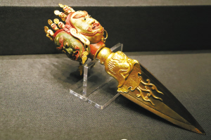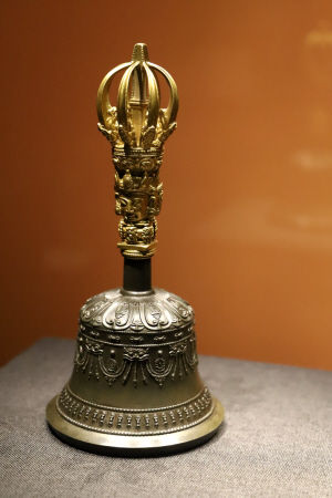 持驗法器單元主要展示修持佛法、舉行佛事活動和佛教儀式時所用的法器,包括金剛鈴、金剛杵、嘎巴拉碗、嘎巴拉鼓、嘎巴拉念珠、喀章嘎、金剛橛、鉞刀等。本部分所選法器多為藏傳佛教密宗修行所用,因多存于庫房,已不在原佛堂陳設,其用途和使用場所便難以知悉。故宮中有許多佛堂,大多是乾隆時期建造,其中很多是密宗佛堂,如雨花閣、梵華樓、梵宗樓、養心殿西暖閣佛堂等。