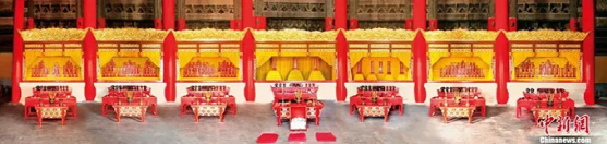 歷代帝王廟景德崇圣殿內7開間龕位與188位入祀帝王牌位。(中新社發 許偉 供圖)