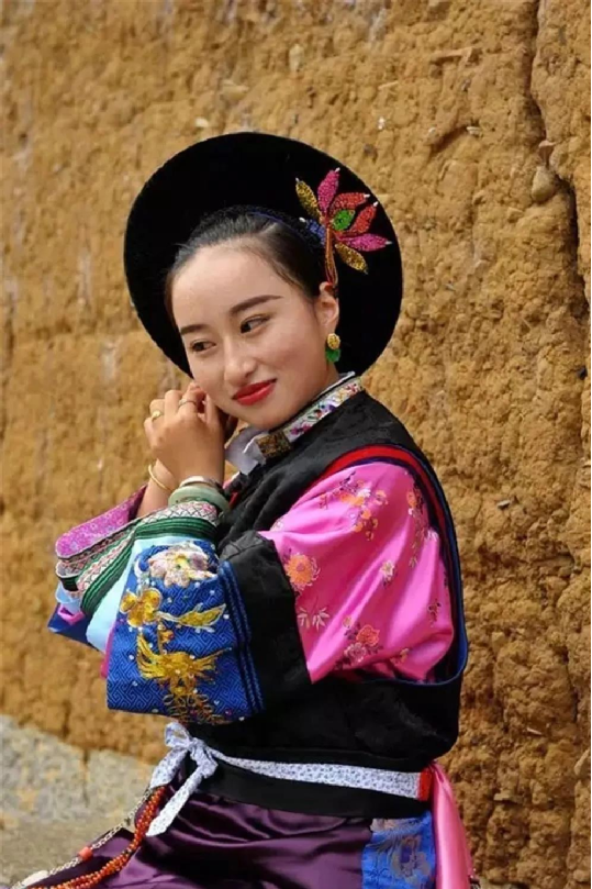 在白族女子的包頭頭飾上,蘊含著一個大家非常熟悉的詞語:風花雪月。垂下的纓穗象征下關的風,艷麗的花飾象征上關的花,帽頂的潔白是蒼山雪,彎彎的造型是洱海月,足見白族群眾的精巧靈思。