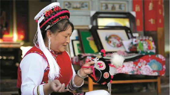 白族群眾用自己的勤勞雙手和一針一線,穿引著對美好生活的熱愛和向往,也為他們的服飾增添了寶貴的文化和藝術價值。