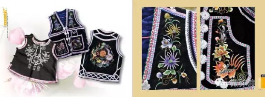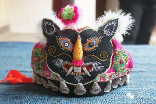 而現存的娃娃服飾有聰明鞋、虎頭帽。其中,以聰明鞋較為常見。孩子滿周歲時,母親總會給孩子準備一雙繡有蔥苗和花朵的“聰明鞋”。據傳,穿過聰明鞋的孩子會更加聰明伶俐,并像蔥苗一樣快快長大。在娃娃服飾中,配飾有項圈、百家鎖、手鑼、腳鏈、扣飾、帽飾等,多系銀器所制。帽飾也有用玉器者,其形狀多為玉羅漢、玉觀音等小件。