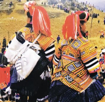 要論“疊穿”的數(shù)量之最,則當(dāng)屬貴州大方縣顯母村的苗族女性了。與苗族慣用銀飾的固有印象不同,這里的苗族女性鮮以銀為飾,她們用數(shù)量極為可觀的服飾“疊穿”來彰顯富裕。節(jié)日里,顯母村的苗族女性換上盛裝——數(shù)條百褶裙系在腰間,塑造出豐腴的臀部造型,內(nèi)層裙子素凈無花,外層裙子則布滿條帶狀蠟染裝飾。在這個(gè)難得的大型社交場合,未婚女孩通過“疊穿”后的獨(dú)特造型來展示自己的魅力,衣物的數(shù)量和精致程度成為了吸引異性、獲得肯定的重要標(biāo)準(zhǔn)和獲得美好婚姻的重要條件。到了婚禮時(shí),女性所著裙子的數(shù)量更是可達(dá)35條。婚后,她們要在裙邊加上一圈深色邊飾以作標(biāo)識(shí)。