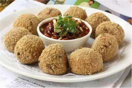 沿山豆腐丸子:豆腐丸子是沿山特色小吃,將豆腐抓成豆腐碎,把蔥或韭菜切成碎末放入豆腐碎中,同時加入鹽和五香粉,反復用手揉豆腐碎,把揉好的豆腐團成丸子的形狀,放入油鍋中炸至變色撈出,即可食用,食用時外酥里嫩,深受游客的喜愛。