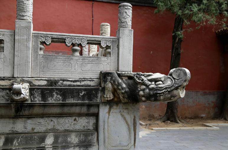 螭首是古代建筑石作制度中的主角之一,有平衡臺(tái)基望柱的重力和排水的功能,同時(shí)也是建筑上的裝飾構(gòu)件,是標(biāo)志著封建禮制建筑等級(jí)的象征,是實(shí)用與裝飾的完美結(jié)合的建筑裝飾小品。節(jié)奏和韻律是中國(guó)古建筑的重要特點(diǎn)。