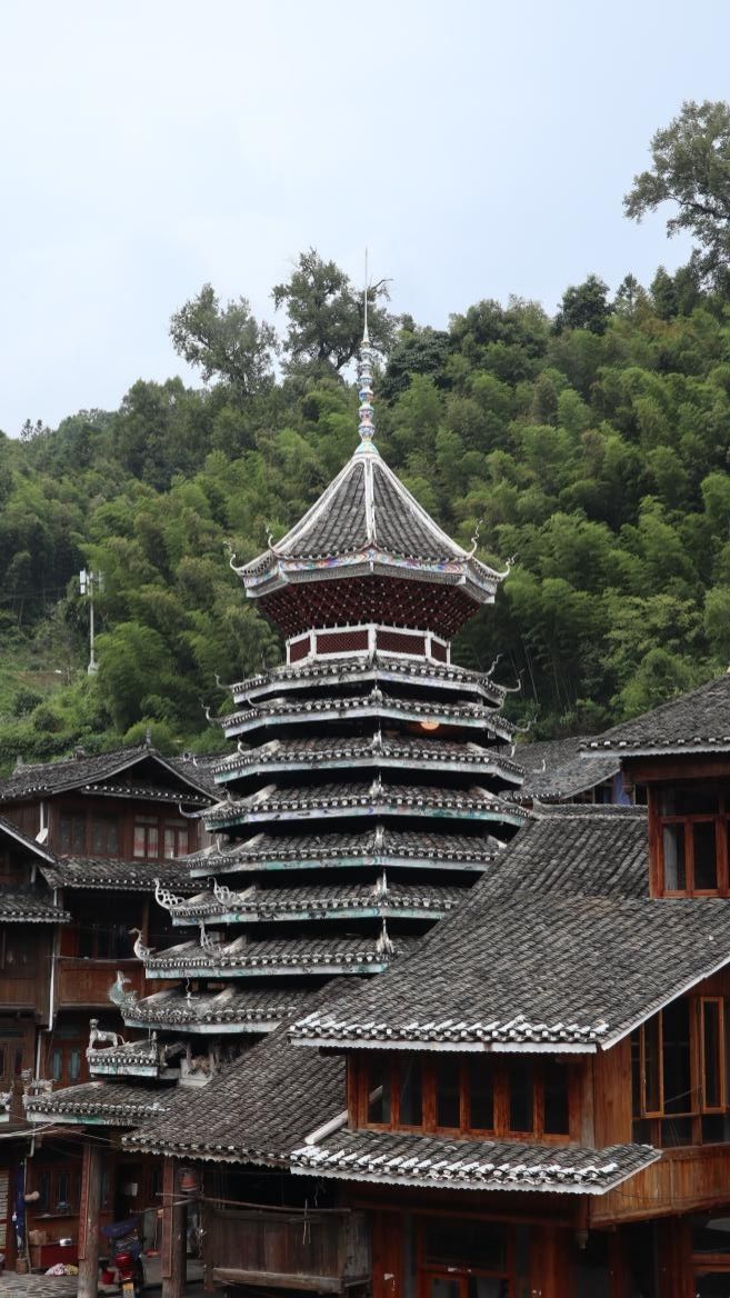 侗族認為單數代表吉祥、好運,鼓樓層數均為單數。鼓樓以杉木為柱枋,鑿榫銜接,再加假柱,層層支撐而上,不用一釘一鉚。鼓樓是侗族議事、祭祀、娛樂休閑的場所。