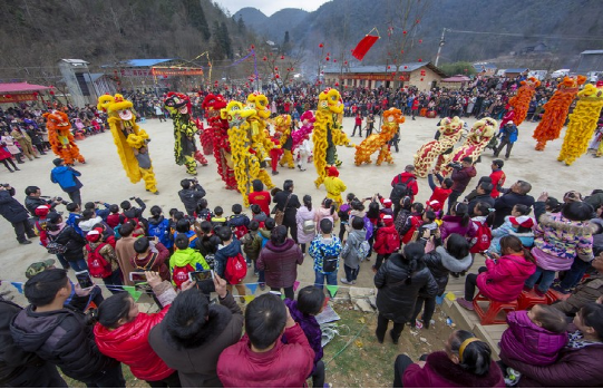 恩施人過年,離不開群體娛樂,從城鎮到鄉村,群眾參與程度高,以玩龍燈、玩獅子、劃采蓮船、打連廂、打耍耍為主。
