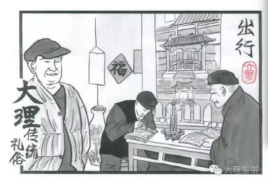 男主人或兒女外出遠門后,在家的親人還要每天一次在祖先靈堂前點香火、燒紙錢和敬獻一碗清水,祈求保佑出行者一路順風、清吉平安。