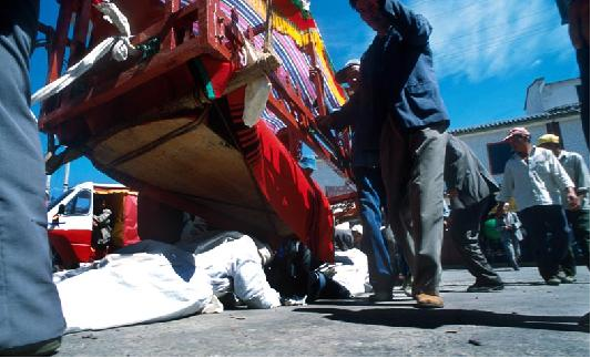 2、出棺送葬:出殯時,街坊鄰友自帶抬具幫助抬棺。為死者念經引路,孝男拄拐哭喪棒走在棺前,孝女走在棺后。棺材抬至繞棺處,擺在高凳上,由念經先生舉行繞棺儀式。念完《繞棺經》,稱為“搭橋過路”,遇到過橋時,孝男跪在橋上,棺從身上抬過,稱為“背棺”。