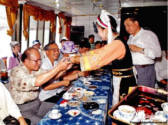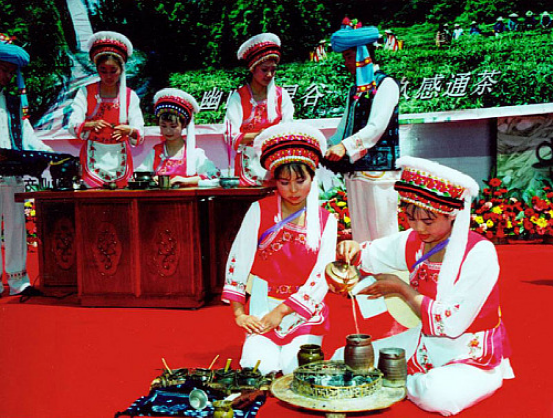 白族熱情好客,先客后主是白族待客的禮節。家中來了客人,以酒、茶相待。著名的“三道茶”就是白族的待客禮。但白族人倒茶一般只倒半杯,倒酒則需滿杯,他們認為“酒滿敬人,茶滿欺人”。受到白族人熱情的款待,應說聲“挪衛你(謝謝)”來表示你的謝意和感激之情。