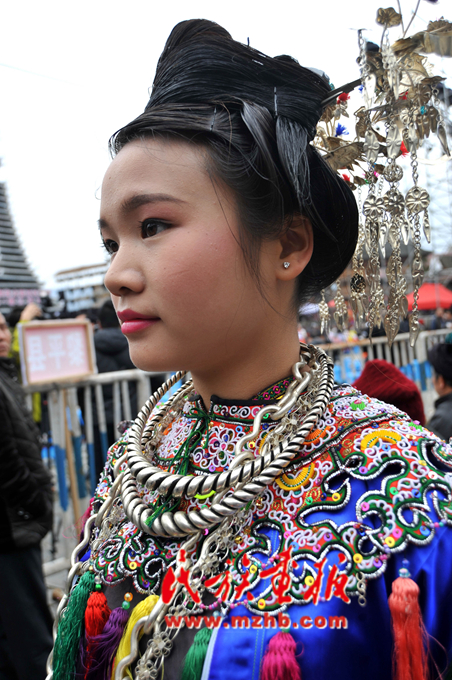 此外,侗族還有些極具民族特色的民族節日或活動。例如斗牛節,一般在每年農歷二月與八月的亥日舉行。侗族每個村寨幾乎都有為比賽而飼養的“水牛王”,“牛王”的圈稱為“生宮”。“牛王”一般有專人飼養,其吃的食物除了飼料,還有蜂蜜、豬油等,可見侗族人民對此的重視程度。還有“為也”,這是個音譯的名稱,是做客的意思,它特指村寨之間互相訪問的集體客人,這是侗鄉規模最大的社交和娛樂性活動,一般在春季或秋后舉行。貴州黎平、榕江、從江一帶的“為也”隊伍多以歌隊或戲班為主。活動參與人數從10人到100人不等,男女老少皆可參加,場面十分熱鬧。與之類似的還有南侗地區的“為嘿”“為頂”“行歌坐月”等活動。“為頂”“行歌坐月”是村寨男女青年之間互訪、社交的活動。還有每年農歷六月的第一個辰日“林王節”,是紀念侗族農民起義軍領袖林寬的節日(圖為薩瑪節上盛裝的侗族姑娘。寧堅攝,引自民族畫報)。