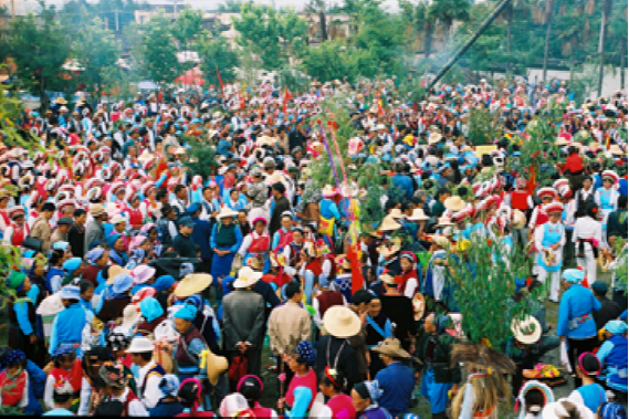“繞三靈”活動的特點,除了向本主神靈祈求風調雨順的內容之外,主要在于其歌舞活動所表現的男女情愛無所顧忌,放達不拘。每個歌舞隊列領頭者均為男女巫二人,他們以一手共執一株齊人高的樹枝,另一手分別揮舞牦牛尾和花手巾,邊舞邊唱,引領著隊伍緩緩前行。樹枝上掛著紅綢系著的葫蘆,據說葫蘆象征母腹,紅綢象征陰血。他們口唱的調子稱“活恩枯”直譯為“花柳曲”,一唱一和,幽默風趣。其后的歌舞隊列,唱的也都是充滿艷情的調子,跳的是霸王鞭和八角鼓舞,舞姿多有男女背靠背、心合心、腳勾腳等形式,無拘無束地表達著熾熱的情感。