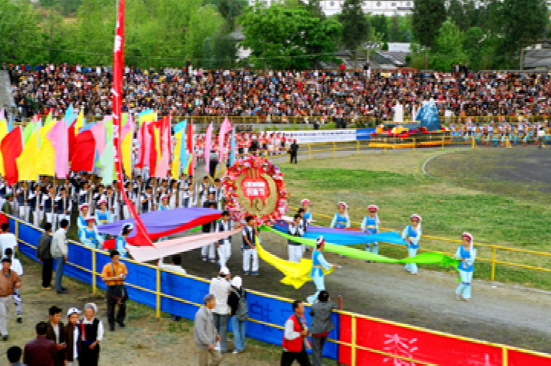 三月街又名“觀音市”,是云南白族盛大的節(jié)日和街期。每年夏歷三月十五至二十日在大理城西的點蒼山腳下舉行。最初它帶有宗教活動色彩,后來逐漸變?yōu)橐粋€盛大的物資交流會。明清時期,四川、西藏、江南各省都有商人到此貿(mào)易。它不僅是個交換場所,還是表演各種舞蹈和賽馬、競技的樂園。中華人民共和國成立后,三月街已發(fā)展成滇西各族人民一年一度繁榮的物資交流和民族體育文藝大會,對加強民族團結(jié)、促進民族間的經(jīng)濟文化交流,起了積極的作用。