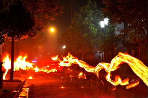 火把燃燒了四、五個(gè)小時(shí),就剩最下兩層了,都是火紅的炭火,等最后一層柴燒得掉下來了,大家就爭(zhēng)先恐后去搶燒殘的柴塊,拿回家插在豬圈上,豬就養(yǎng)得更肥了。