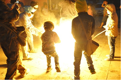 不到黃昏,鞭炮聲就響起來了。新生兒的父親點(diǎn)燃火把后,孩子們迫不及待地拿著小火把和松明粉,跑來跑去燒新生兒的的各種親戚,大人們樂呵呵地接受孩子們噴灑過來的火焰,并一致說著很吉祥的祈愿祝福語。“從此晦氣不在嘍!”、“一年更比一年好呀!”、“紅紅火火又一年”。男女老少在火把樹下吃喝玩樂,其樂融融。糖、炒蠶豆、梨、蘋果等被大家傳來傳去,新生父親挨個(gè)向親友敬酒。親友鄰居喝著喜酒,一致祝福新生兒安康成長(zhǎng),將來富貴吉祥。