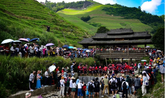 7月15日,農(nóng)歷六月初六,是廣西龍勝金坑瑤寨的傳統(tǒng)節(jié)日“曬衣節(jié)”,當(dāng)?shù)丶t瑤同胞舉行了豐富多彩的民俗文化活動進(jìn)行慶祝。