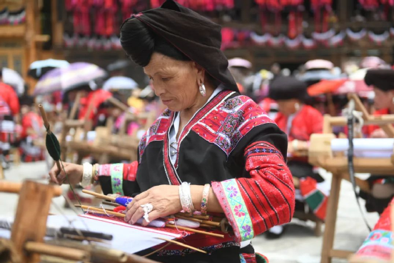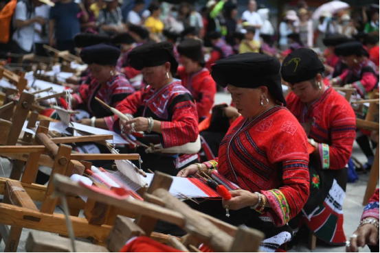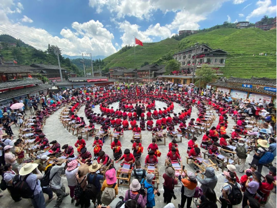 2014年,龍勝瑤族服飾(紅瑤服飾)以其精湛的手工藝和文化底蘊(yùn)入選國家級非物質(zhì)文化遺產(chǎn)代表性項目名錄擴(kuò)展項目名錄。如今的“曬衣節(jié)”已不僅是紅瑤的傳統(tǒng)佳節(jié),“農(nóng)歷六月六,廣西龍脊看紅衣”等曬衣節(jié)系列活動已成為桂林山水游的一張名片,讓各地游客充分感受多姿多彩的民族風(fēng)情。紅瑤同胞們用自己獨(dú)特的方式,為中國共產(chǎn)黨成立100周年獻(xiàn)上自己的祝福。