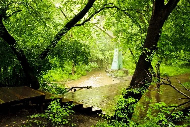 橫貫沙灘,百里藏幽,滿是綠蔭。望連綿古樹,遮天蔽曰,松榆椴橡,南北聯(lián)姻。翠鳥歡歌,繁花綻蕊,千眼噴泉四季吟。游人喜,嘆夢中仙境,絕妙園林。