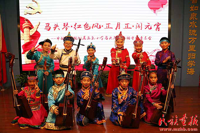2019年 2月19日,中國科學(xué)院附屬玉泉小學(xué)馬頭琴藝術(shù)團(tuán)在京舉辦“馬頭琴?紅色風(fēng)?正月正?鬧元宵”專場音樂會
