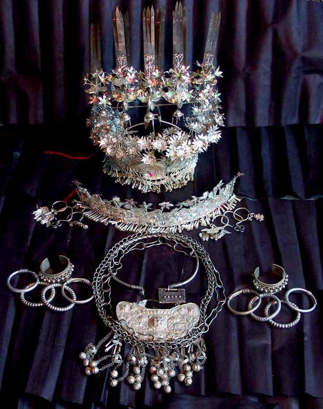 據苗族古歌傳唱,早期的苗族銀飾以胸飾、手飾為主,其中胸飾由冷兵器時代的護心鏡演變而來,手鐲最初是巫術中的兒童辟邪之物。后來,由于不同苗族支系文化的相互滲透,用于服飾裝扮的內容和形式逐漸豐富,遂演變成現在豐富多彩的苗族銀飾。