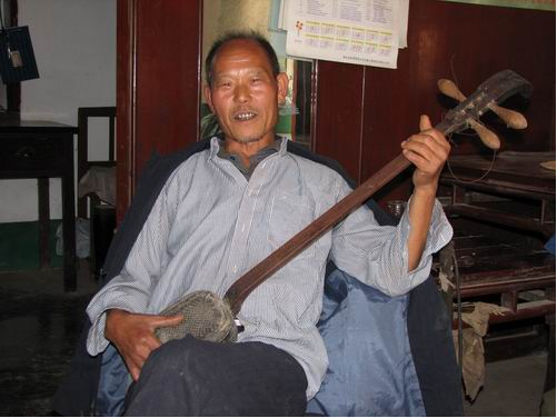 五峰南曲無專業藝人,“門第師”家傳者居多。師徒間手藝南曲兼學,親朋相教亦不少。其演唱形式以坐唱為主,一人自彈自唱,或二人一彈一唱,亦可多人一起彈唱。自制小三弦是其主要伴奏樂器,也有配以二胡、簡板的,并不拘于一格。