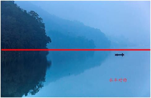 除了縱向對稱,還有水平對稱。水平對稱,一般適合拍攝上下對稱的題材,比如說水面的倒影。在太陽還沒出來的時候,已經有亮光的時候,天空呈現出一種藍調,水面又沒有高光,一切都是那么的寧靜,因為藍色是讓人很安靜的一種顏色,很舒服。如果你看到了這時候水面的景色,倒影還不錯的話,不妨采用這種方式。