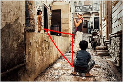 所以,畫面中的三角形關系安排是否得當,對于畫面的平衡和協調是非常重要。安排得當,畫面會看起來很舒服,主次關系、呼應關系也非常清晰。