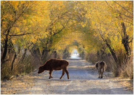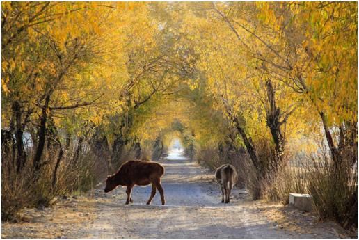 我們將遠處部分的高光壓低,提亮了一下黃色的樹葉和地面的光照,加強了地面的陰影,這樣就有了一個比較通透明快的感覺,空間的縱深效果也有了加強。另外也稍微提亮了牛身上的亮度,但不能提的太亮,因為這樣的話會使片子的噪點比較大,同時也會失色。