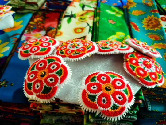 ▲惠女刺繡用于腰巾、頭巾、裝飾之中