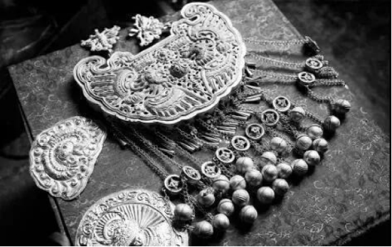 貴州雷山苗族銀飾制作藝術(shù)可以說在中國是首屈一指。在銀飾上鑄上關(guān)于神靈祖先吉祥物和崇拜物等圖案,被賦予神圣的意義而使佩戴它的人獲得保佑