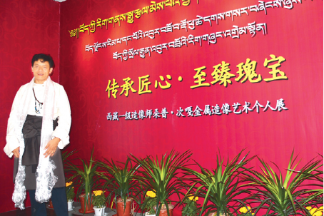 2016年9月2日,以“傳承匠心·至臻瑰寶”為主題的朵普·次嘎金屬造像藝術個人展在西藏博物館開幕。 圖為朵普·次嘎的紀念照片。