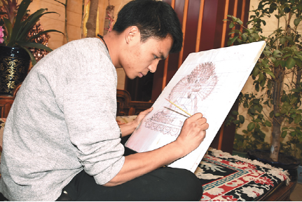 技藝上的登峰造極,次嘎把這一秘笈歸結成幾個平常的字眼:“興趣和堅持”。從小受家族文化的熏陶,兩個兒子對傳統文化有著濃厚的興趣。薪火相傳也成了次嘎肩上的責任。20出頭的大兒子扎西拉達穿著白T恤,皮膚白皙、手指纖長、陽光帥氣,立志要子承父業。“父親告訴我即便是要做一名手工藝人,也不能放棄對文化知識的學習,從小便把我送到內地學習。現在,我長大了,該回來了。” 扎西拉達的話語堅定。