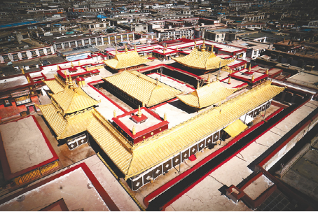 2011年,我區全面啟動大昭寺金頂維修工程,朵普·次嘎積極參與到大昭寺金頂修繕保護工程當中。 圖為大昭寺金碧輝煌的金頂。