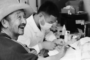 中央民族大學藥學院師生為北京市懷柔區老溝門村村民開展義診活動。