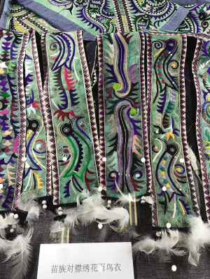 展出的苗族對襟繡花百鳥衣。圖片攝影:高瑩