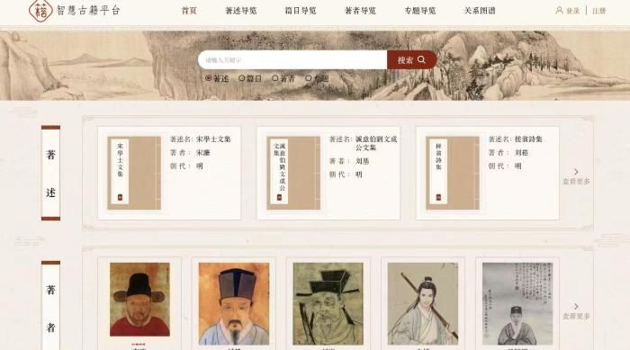 記者看到,只要點擊“智慧古籍平臺”首頁的“著述導覽”頁面,便可查閱著述的章節目錄、著述提要等基本信息及相關作者的世系圖、社會關系圖;點擊“篇目導覽”即可進入文本閱讀界面。