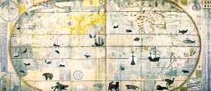 李之藻年輕時就對實學頗感興趣,曾自行繪制過明朝兩京十三省的地圖。見到利瑪竇用西法繪制的世界地圖后,李之藻敏感地意識到,這個地圖的繪制方法與中國傳統的“計里畫方”方法不同,是“取天文以準地度”,用經緯度確定地理方位。對利瑪竇的學問一見而傾心的李之藻,每天都要到利瑪竇的公寓學習地理、天文知識,每次都要花上四五個小時。1602年,李之藻與利瑪竇結合中西繪圖技術,合作繪制了一版世界地圖《坤輿萬國全圖》,這幅地圖改變了當時通行的將歐洲居于地圖中央的西方繪圖格局,把子午線向西移動170度,從而使東亞的中國居于地圖的中央,并且全圖標上了詳細的漢字標識,這是中國最早的世界地圖。