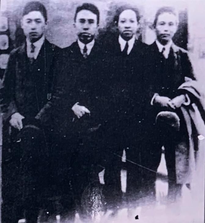 王若飛(右二)在法國勤工儉學期間和同學留影(許覬佳攝于貴陽市達德學校舊址)