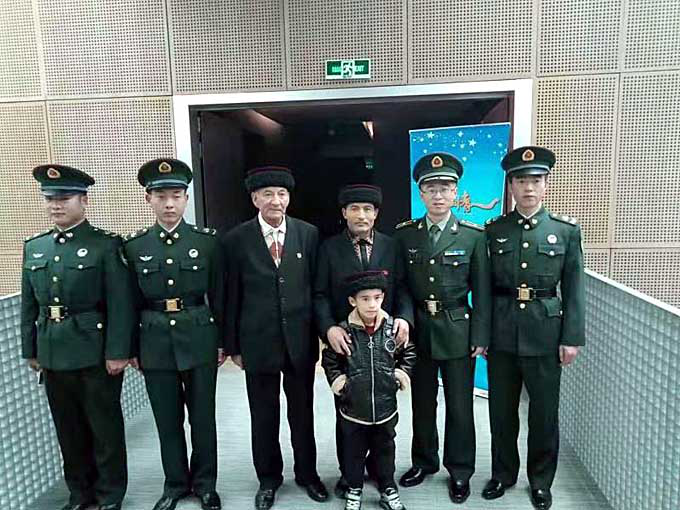 拉齊尼·巴依卡一家人在北京參加央視節目錄制后與邊防戰士合影。(網絡圖片)