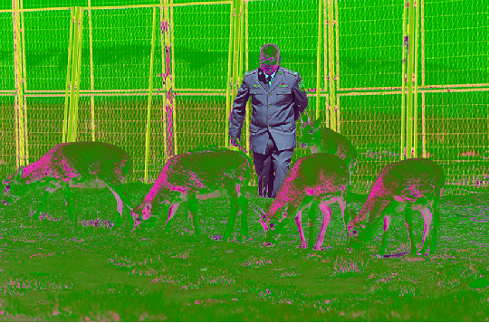 在可可西里國家級自然保護區索南達杰保護站,站長趙新錄與藏羚羊在一起(9月28日攝)。新華社記者 李占軼 攝