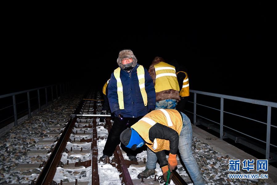 1月11日,中國(guó)鐵路青藏集團(tuán)有限公司格爾木工務(wù)段望昆線路車間的于本蕃(右一)和
