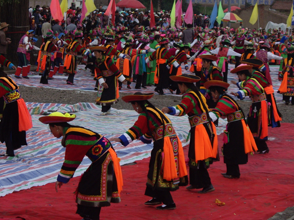不同地區的土族舞蹈具有相對獨立性,互助的“安昭”、民和的“納頓”、大通的“踏灰”、同仁的“於菟”、甘肅卓尼的“嘎爾”等是最具代表的民間舞蹈。“安昭”,土語稱之為“千佼日”,意為“彎曲”或“轉圈”,是土族民間喜慶節日和婚禮儀式中,用于禮贊祈祝的一種圓場群舞,也是一種歌舞結合、無樂器伴奏的集體舞蹈。一般由男女各半圍成圓圈,由一男子帶領,一唱眾和。舞蹈動作簡單質樸,舞者兩手由右胯旁起向左上方至右上方劃圓弧,變為左手屈于腦前,右手高居于后,似雄鷹翱翔于藍天。“於菟”舞即虎舞。“於菟”,是古代楚人對虎的方言稱謂。每年農歷十一月二十日祭山神時,名為於菟的舞者在赤裸的上身繪制虎豹圖案,模仿虎的形象“前端腿跳”舞蹈,達到祀神驅邪、祈求平安的目的。