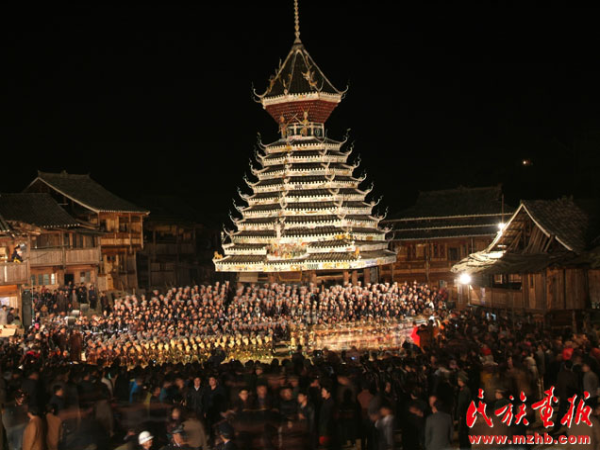 侗族是個能歌善舞的民族,素來有著“以歌對答,以舞尋偶”的傳統。侗族歌舞時常常用蘆笙這種樂器來伴奏?!短J笙舞》是侗族地區較為流行的舞蹈,主要分布在中國貴州、廣西壯族自治區和湖南等地的侗族。除此之外,苗族、水族、仡佬族、彝族、拉祜族、傈僳族、納西族等少數民族地區也流行此舞蹈。侗族蘆笙舞重在吹、跳,動作并不復雜。侗族人在跳蘆笙舞時的動作、節奏通常是“吸氣上步,呼氣下沉,起伏稍慢,節奏平穩”。其中包含著多種形式和內容,有自娛自樂形式的舞蹈、有男女合作形式的交誼舞、還有蘆笙高手邊演奏邊舞蹈的高難度形式以及競賽性質的舞蹈。群眾性蘆笙舞、表演性蘆笙舞、風俗性蘆笙舞是蘆笙舞的三大類別。過去,侗族通常會在鼓樓跳《蘆笙舞》。
