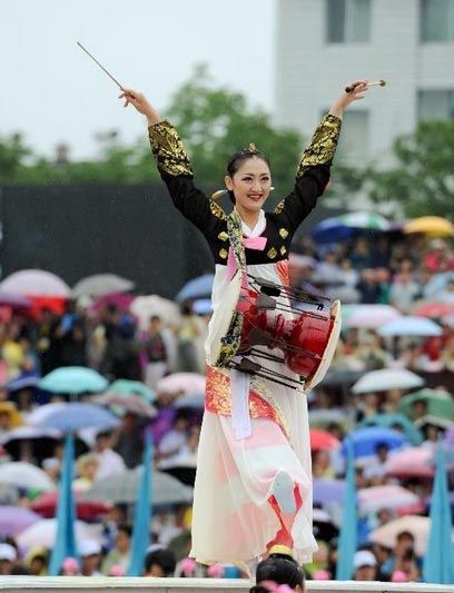 古代的長鼓,用獐皮做左邊的厚鼓皮,用狗皮做右邊的薄鼓皮,鼓筒采用木材或多層紙、薄鐵等材料制成。長鼓有沙市6個銅制的龍頭形鉤子,鉤住松緊繩.松緊繩用三股真絲線制成,每只鼓上裝有8全套袖,即用來調整鼓繩的皮套。長鼓起源于我國的宋代,后來流傳到朝鮮半島,成為朝鮮民族音樂的主要打擊樂器。我國東北朝鮮族聚居的地方,長鼓在朝鮮族音樂和舞蹈中起重要作用。長鼓的右邊用一根飾彩穗的竹條敲,左邊用手,右邊聲高左邊聲低,能敲擊出豐富多彩的節奏,著名的朝鮮族長鼓,在全世界聞名,藝術水平相當高,真正代表了能歌善舞的朝鮮民族的藝術特色。