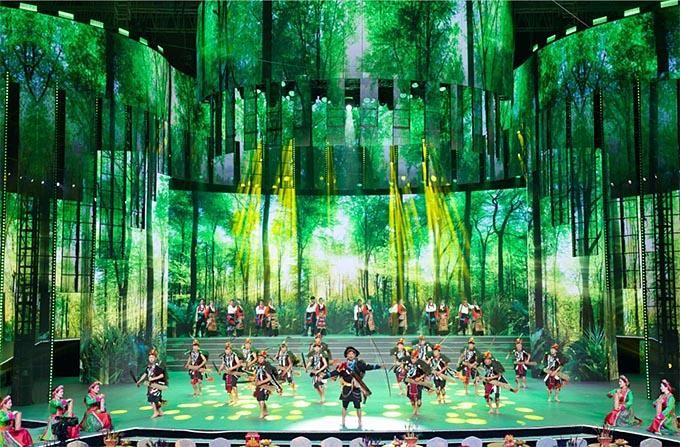在舞美上,晚會(huì)傾力打造中華文化概念,突出鑄牢中華民族共同體意識(shí),建構(gòu)熱烈祥和的觀演環(huán)境、身臨其境的現(xiàn)場(chǎng)體驗(yàn)、自然流暢的互動(dòng)場(chǎng)景,以更炫麗、更時(shí)尚、更具生命力的節(jié)目?jī)?nèi)容和形式,為觀眾提供技術(shù)與藝術(shù)完美結(jié)合的視聽(tīng)盛宴。主創(chuàng)人員別具匠心地把舞臺(tái)設(shè)計(jì)成一個(gè)具有民族特色的大客廳,寓意各族兄弟姐妹溫暖團(tuán)聚,營(yíng)造既有民族特色又有時(shí)代氣息的視覺(jué)空間。