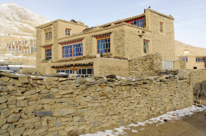 受地理氣候、歷史因素等影響,青海各傳統村落的人口密度、村域面積和村民從事的主業等各不相同。同一地區各村落之間雖然地貌特征大致相同,但因局部的植被條件存在差異,所以民居建筑的內部結構及木材用量上稍有差異。東部農業區人口密度相對較大,一個自然村分建為兩到三個行政村。這些村落通常有著共同的祖先、共同的風俗習慣以及共同祭祀的山神和共同供奉的寺廟。而青南地區的一個行政村下轄5至7個自然村,轄區面積約300至500平方公里,有兩三座寺院。山水地貌、拉則(神山祭祀臺)、經幡、寺院、佛塔、石經墻及錯落有致的碉樓民居建筑,構成了一個有機的整體,是青藏高原傳統村落不可或缺的組成部分。