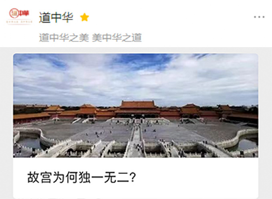 本文內(nèi)容來源“道中華”公眾號文章《故宮為何獨(dú)一無二?》,點(diǎn)擊標(biāo)題或圖片即可閱讀。