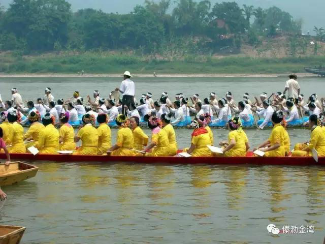 每年的潑水節,西雙版納傣族都要舉行橫渡瀾滄江的賽龍舟活動。一般在潑水節的第一天舉行。比賽時,江上停泊著披綠掛彩的龍船,船上坐著數十名精壯的水手,船中間站立1人擊鑼指揮,號令一響,整裝待發的龍船像箭一般往前飛去,在規定的范圍內,哪一隊先到達目的地為勝。