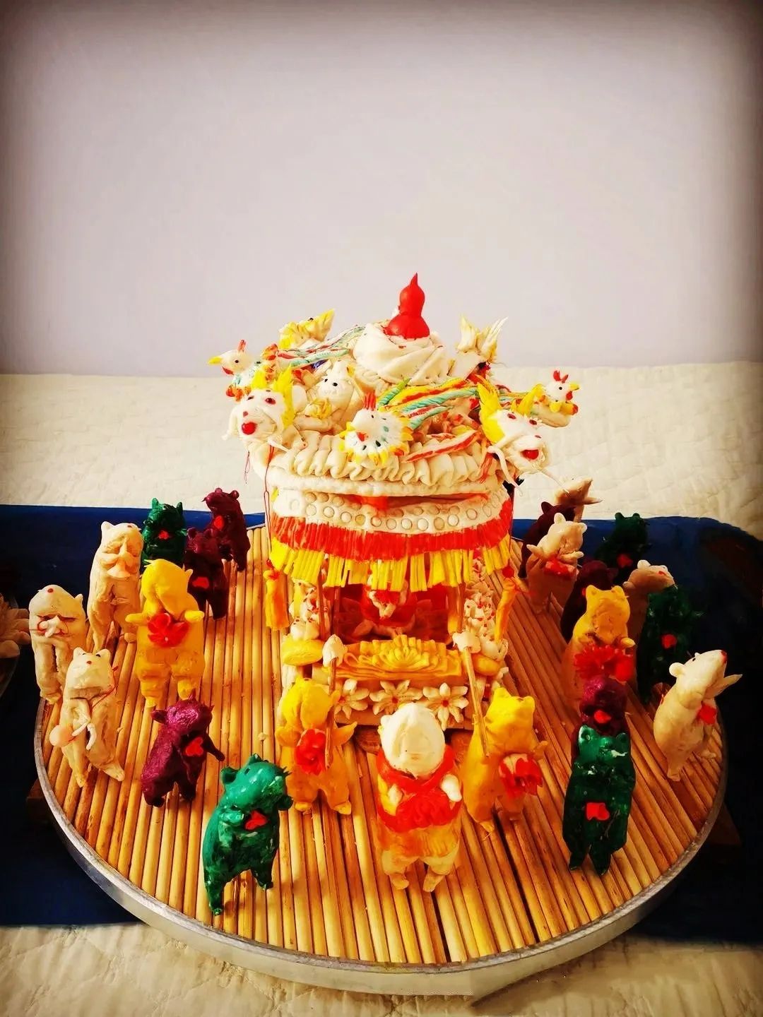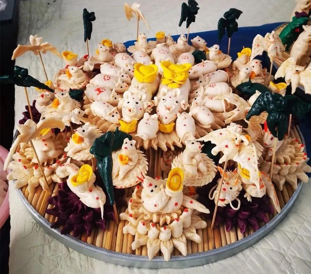 由于托克托縣地理位置獨特,早在清朝時期是塞外聞名的“水旱碼頭”,這里交通便利,經濟繁榮。康雍乾時期兩翼土地的放墾,成為口外漢族村落形成的主要原因。到乾嘉之際,土默川縱橫900余里田陌相望,農商兩業日臻繁盛。大批山西、陜西、河北等地農民、商人、小手工業者紛紛來到這里種田、經商及傳授手工技藝。從而晉陜地區的捏面人手工技藝也被帶到托克托縣地區,在這里漢族和少數民族(主要是蒙古族)相互融合,形成了獨具特色的托克托縣面塑技藝。內蒙古自治區級非物質文化遺產代表性傳承人薛籽女,托克托縣章蓋營村人,是自治區級托克托縣面塑傳承人,下面展示的是她創作的面塑作品:《老鼠娶親》、《鼠年抗疫情》、《千手觀音》。