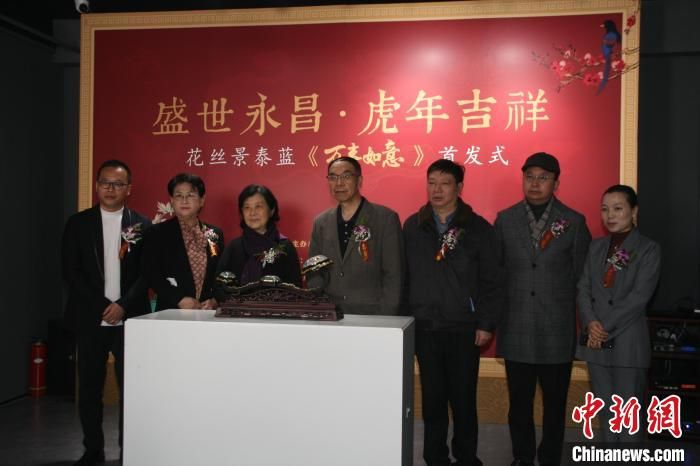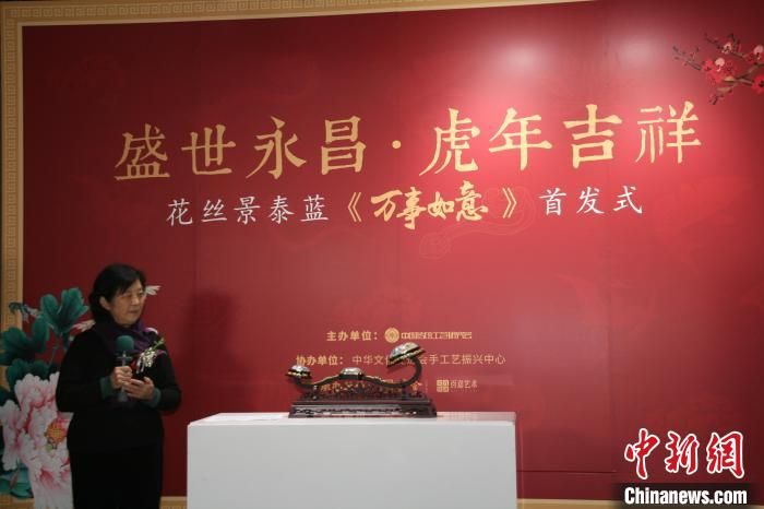 由中國工藝美術大師、國家級非物質文化遺產景泰藍制作技藝代表性傳承人鐘連盛,中國工藝美術大師、國家級非物質文化遺產花絲鑲嵌制作技藝代表性傳承人程淑美首度聯袂創作的首款花絲景泰藍賀歲作品《萬事如意》于2021年12月31日在京面向社會限量首發。