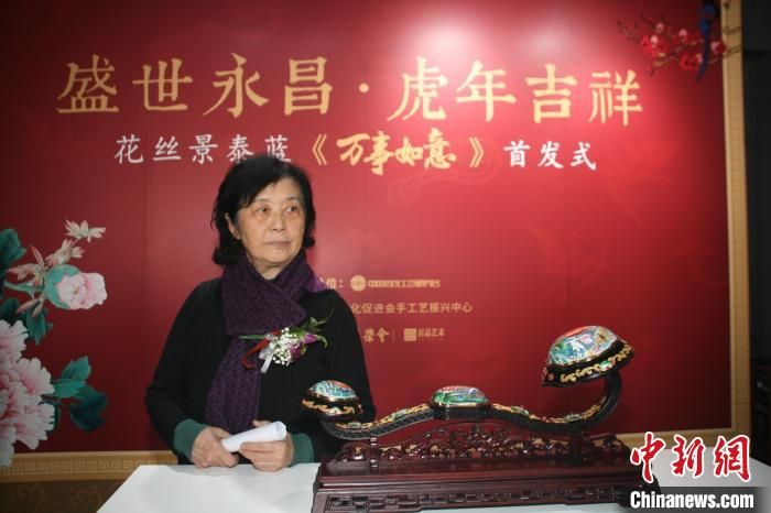 中國工藝美術大師程淑美介紹花絲景泰藍賀歲作品《萬事如意》 李妮 攝